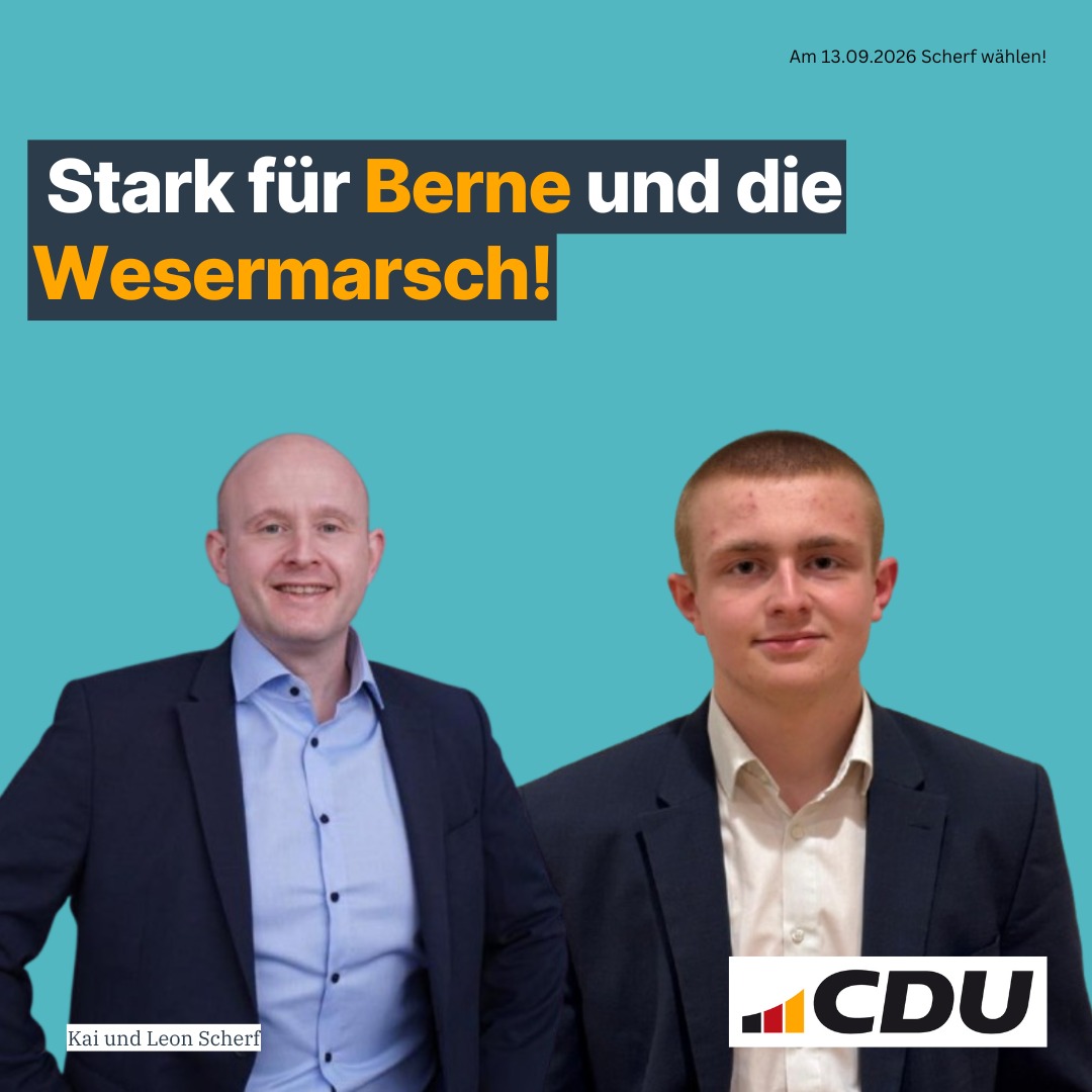 Gleichzeitig ist es mir wichtig, dass sich auch die nächste Generation politisch einbringt. Mein Sohn Leon Scherf wird sich künftig ebenfalls kommunalpolitisch engagieren und strebt eine Kandidatur für den Kreistag des Landkreises Wesermarsch an. Gemeinsam stehen wir für Kontinuität, Verantwortung und einen klaren Blick nach vorn.